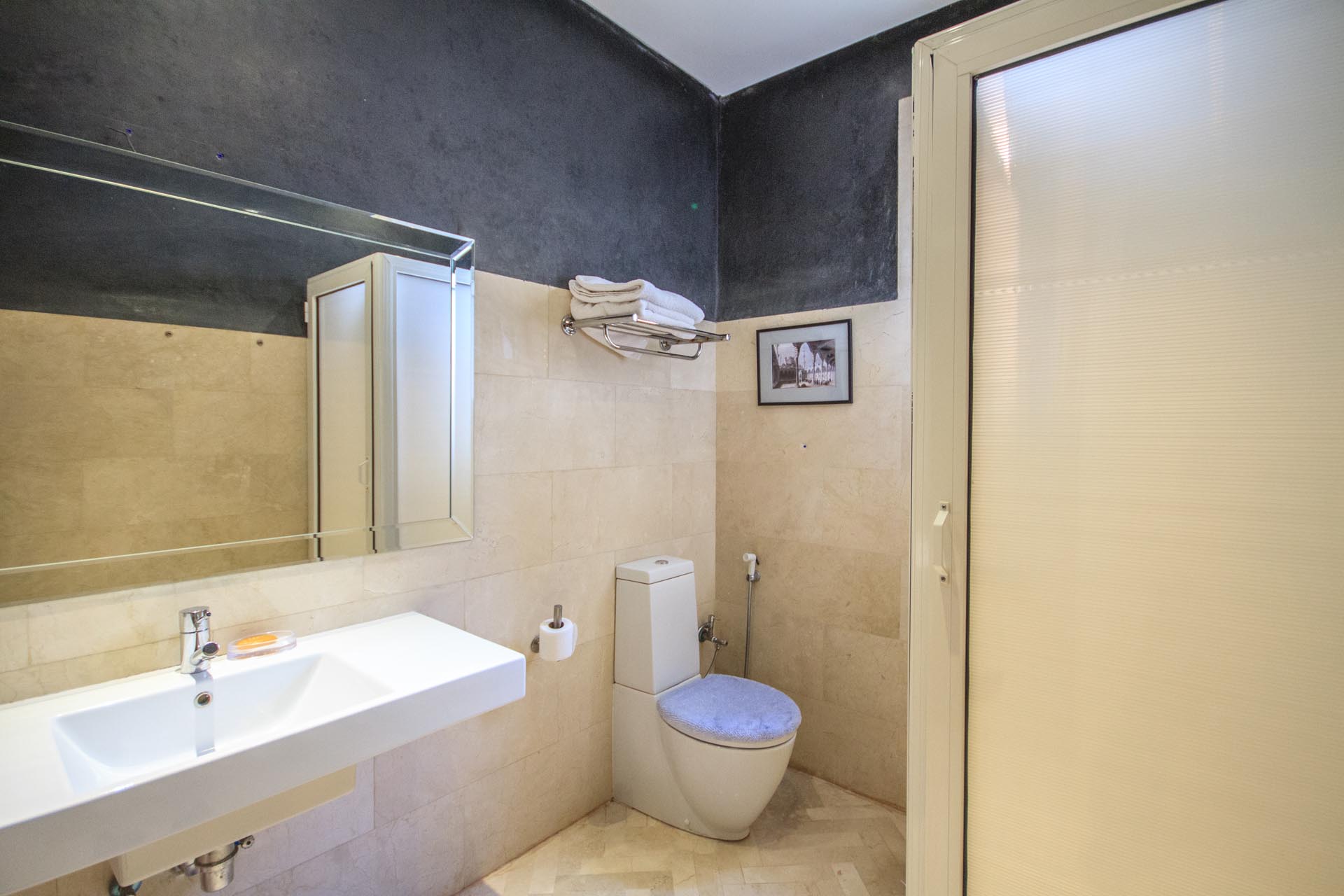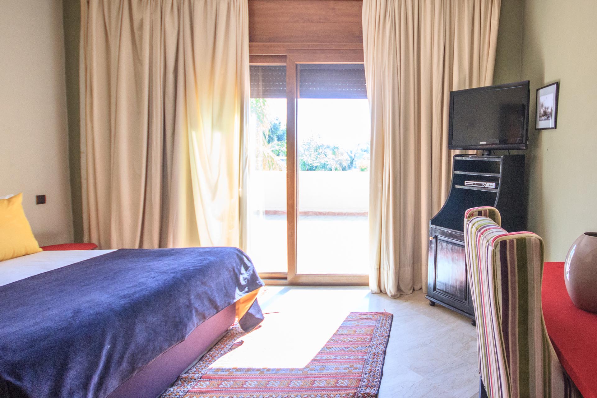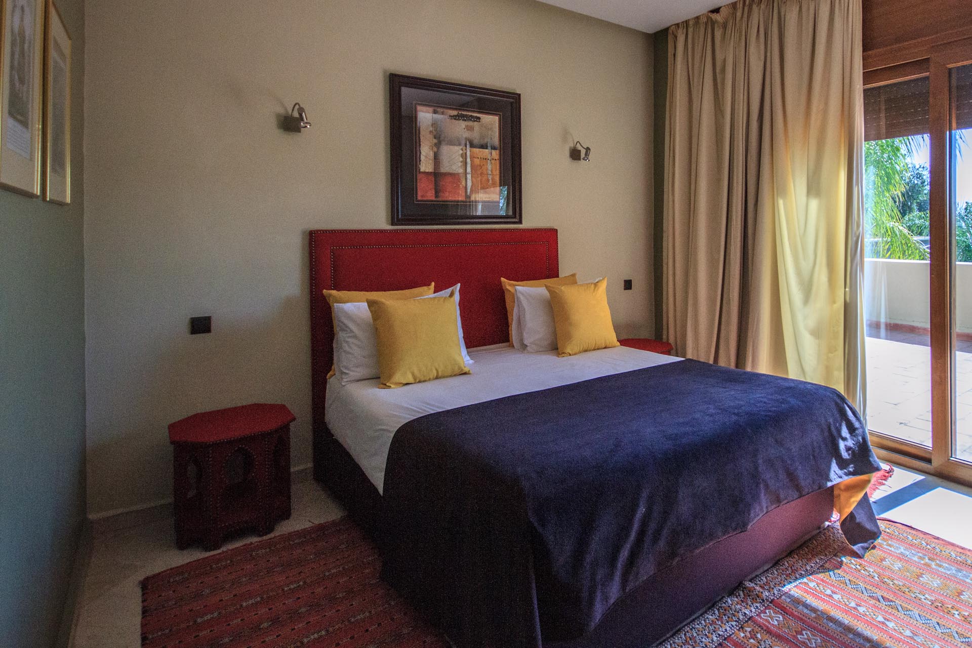 Chambre de 30m² élégante, stylée, chacune avec son charme épicé des couleurs de Marrakech, Télévision, WIFI, salle de bains avec douche, avec terrasse