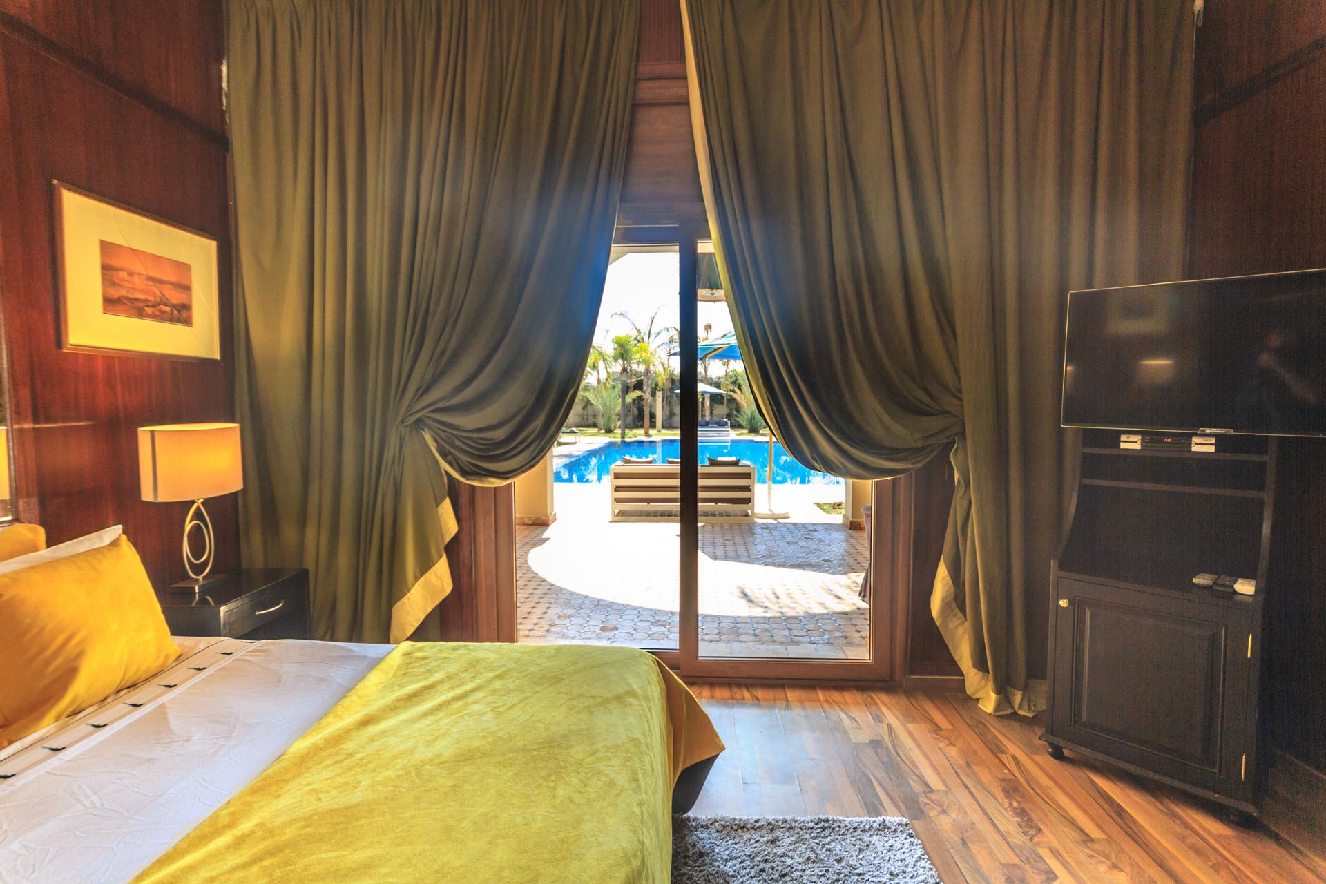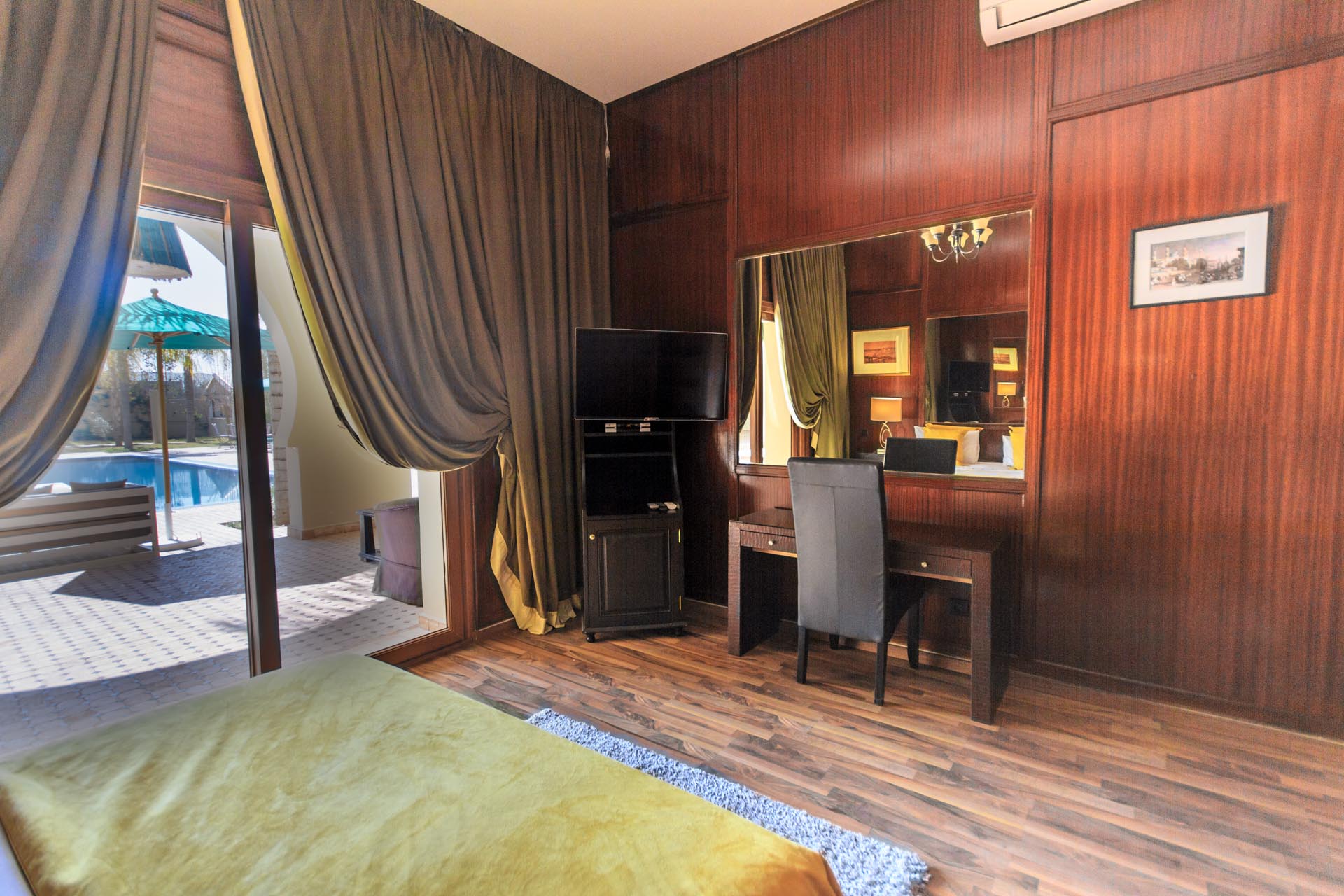 Chambre de 30m² élégante, stylée, son charme épicé des couleurs de Marrakech, Télévison, WIFI, salle de bains avec douche, terrasse