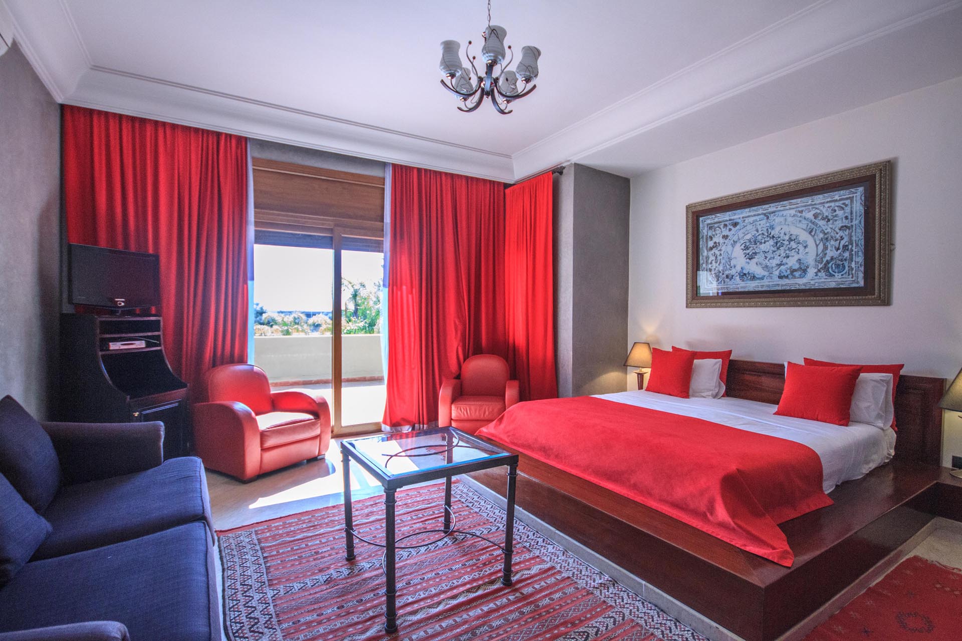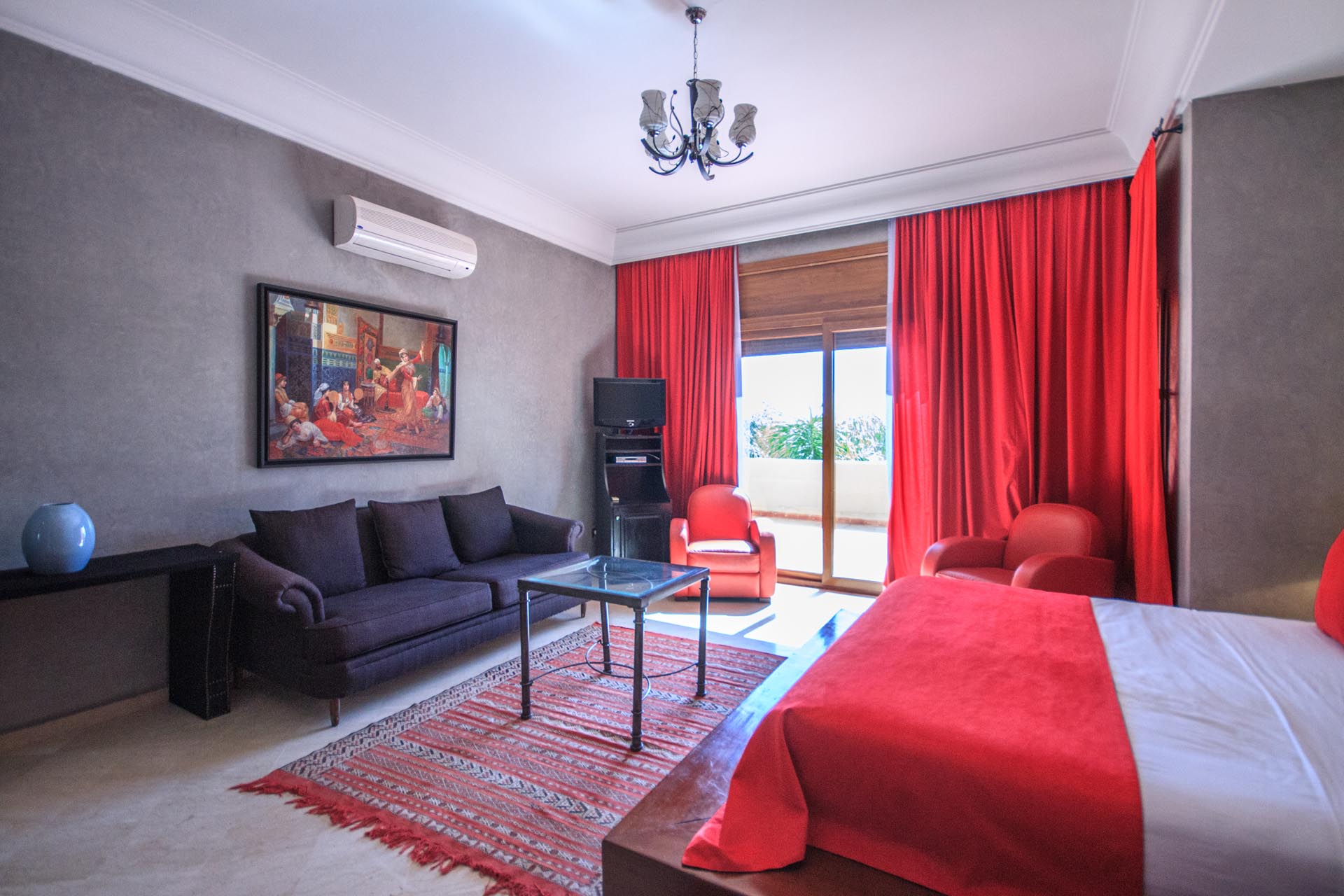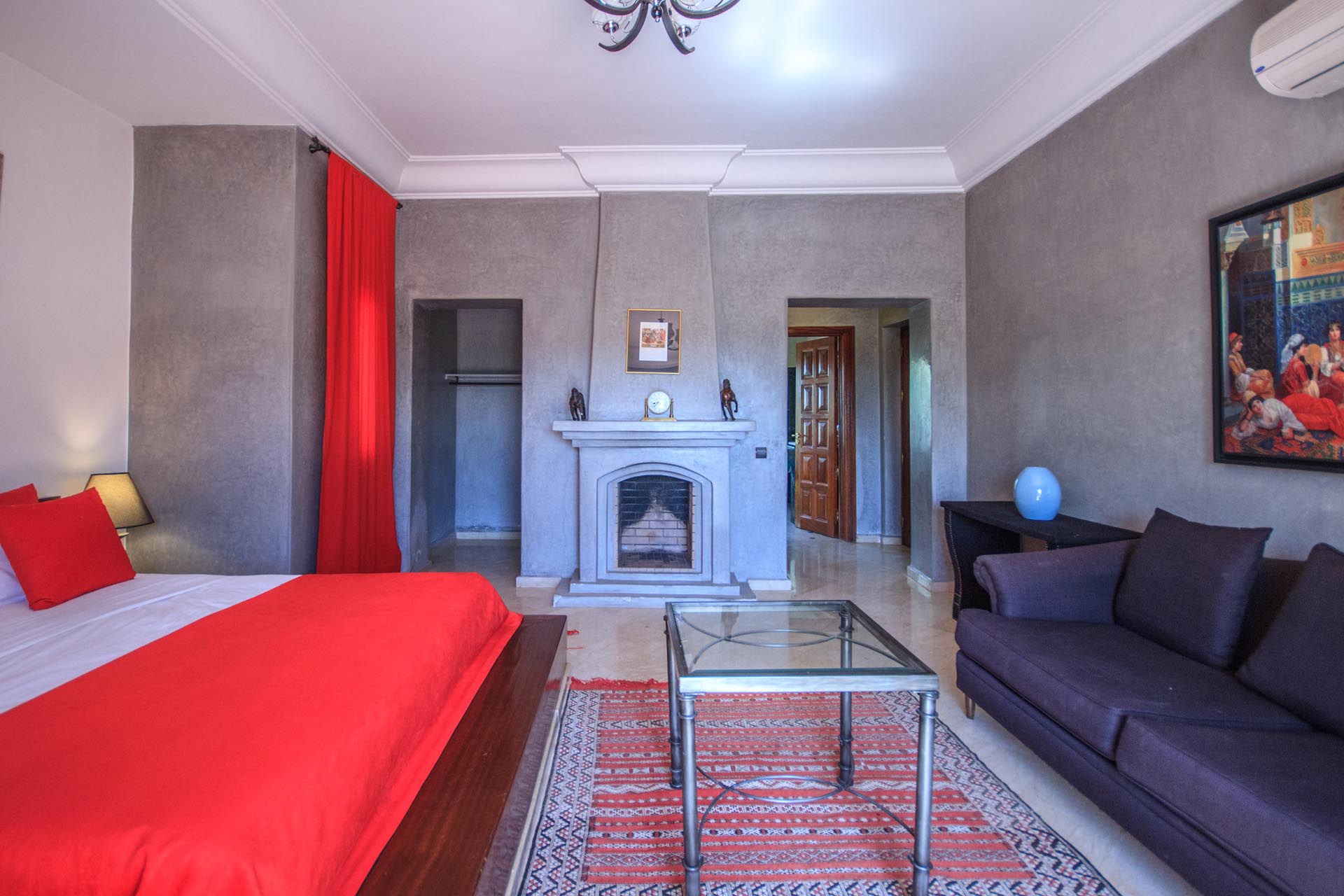 Chambre spacieuse de 60m² élégante, dressing, salle de bains avec baignoire et douche, espace salon aménagé, avec terrasse
